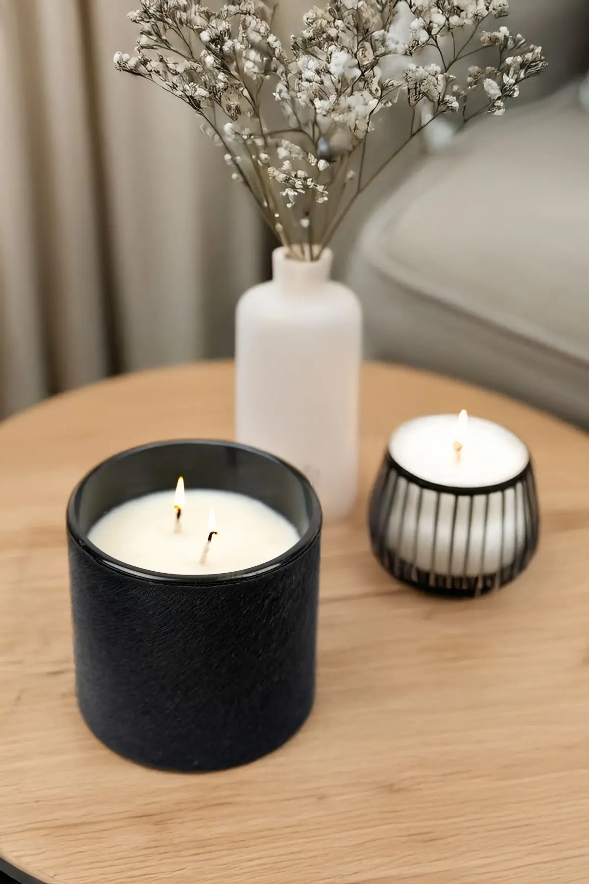 Tüylü ve desenli dış kaplaması sayesinde bu mum, yalnızca koku değil; aynı zamanda hissedilen bir tasarım objesidir. Siyahın asaletiyle bütünleşen doku, ev dekorasyonunuza şıklık ve sakinlik getirir.